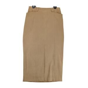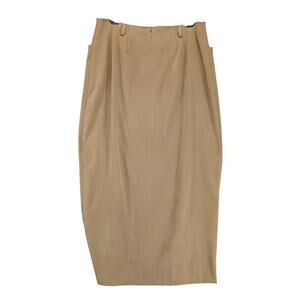 Liz Claiborne Sport Tan Faux Suede Pencil Midi Skirt Sz 12 31" W 15" Front Slit