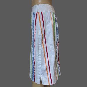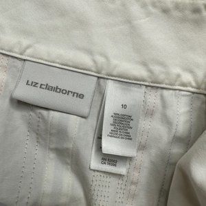 Liz Claiborne Straight Skirt Size 10 White Color Stripes Mid Rise 100% Cotton