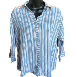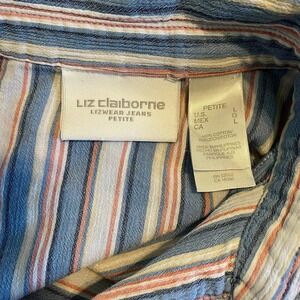Liz Claiborne Striped Button Up Professional 3/4 Sleeve Striped Blouse Sz LP