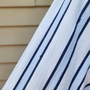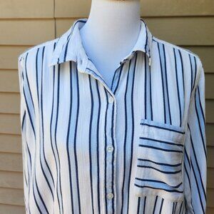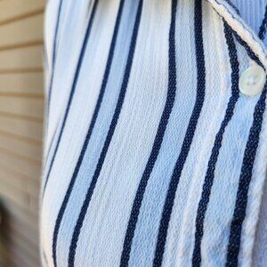 Liz Claiborne Striped Button-Up Blouse White Blue Pocket Square Cotton Blend