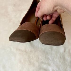 Beautiful genuine suede leather upper brown patchwork chunky heels by Liz Claiborne. Great preowned condition. Size 8.