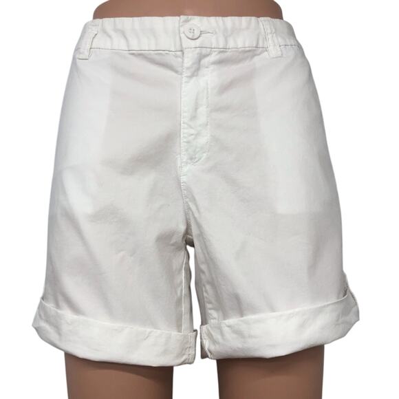 Liz Claiborne Summer White Cuffed Hem Shorts Side and Back Pockets Mid Rise
