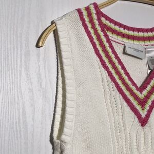 Liz Claiborne Sweater Vest Womens Medium White Pink Tennis V-Neck Cable Knit