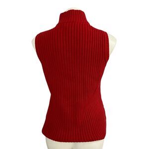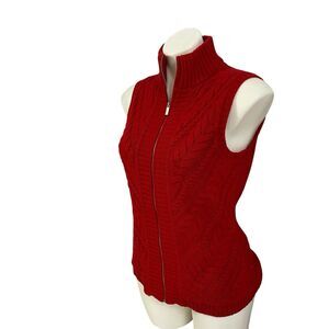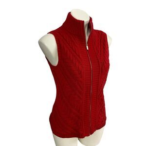 Liz Claiborne Sweater Vest Womens PM Red Full Zip Cable Knit Nautical Holiday