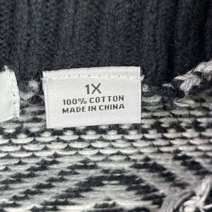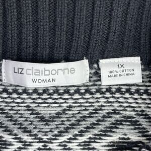 The Liz Claiborne Sweater is a stylish and versatile addition to any woman's wardrobe. This black v-neck pullover sweater features a classic Nordic Fair Isle pattern, perfect for the winter season. Made from 100% cotton with a tight-knit fabric, this sweater is both comfortable and durable. It is designed for a regular fit in size 1X, making it suitable for casual wear, workwear, or even traveling. The long sleeves and v-neckline add a touch of elegance to this classic and timeless piece, ideal for those who appreciate a preppy or modern style.