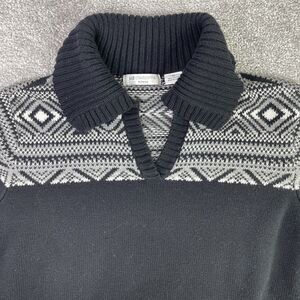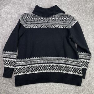 Liz Claiborne Sweater Women’s 1X Black Collar Pullover V-Neck Nordic Fair Isle