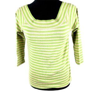 Liz Claiborne Sweater Womens Size Small Green Gray Striped Pullover 3/4 Sleeve