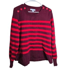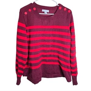 Liz Claiborne Sweater Women's Size XL Red Burgundy Stripe Long Sleeve.