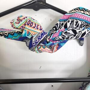 Liz Claiborne Swim Top Womens 12 Padded Triangle Colorful Aztec Tie Halter
