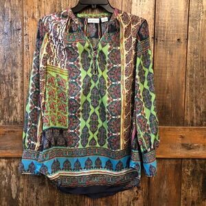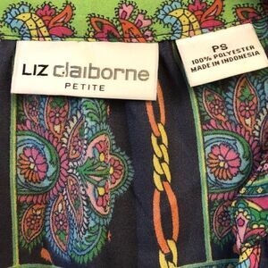 Liz Claiborne Sz PS Green BOHO Relaxed Paisley Lightweight Long Sleeve Blouse