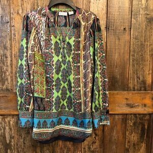 Beautiful green paisley v-neck with buttons, BOHO long sleeves.