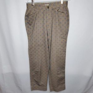 Tan and Blue All-Over Medallion Print Tabitha Straight Leg Pants in Size 10 by Liz Claiborne.