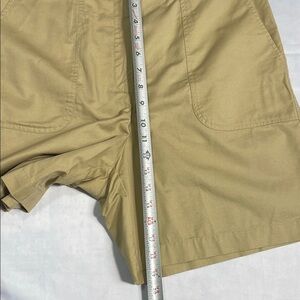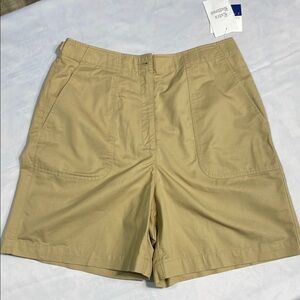 These tan Bermuda shorts by Liz Claiborne offer a crisp, structured look with a flat front design. Made from a comfortable cotton blend, they are perfect for both casual summer outings and business casual settings.