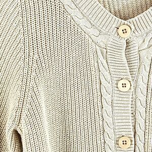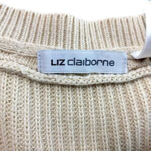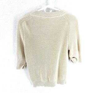 Liz Claiborne Tan Cable Knit Sweater Medium 8/10 Cotton Button Butterfly Sleeve