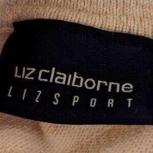Liz Claiborne Tan and White striped zip up sweater with collar