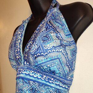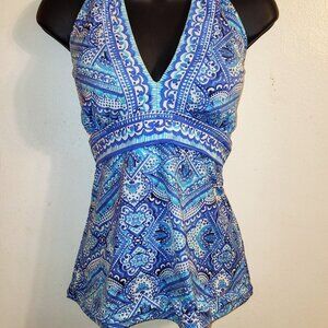 Liz Claiborne Tankini Top Swimsuit Blue Tribal Pattern 2X
