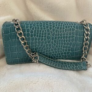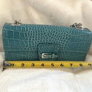 Liz Claiborne Teal Crocodile-Embossed Chain Strap Bag-Vintage Y2K Mini Purse