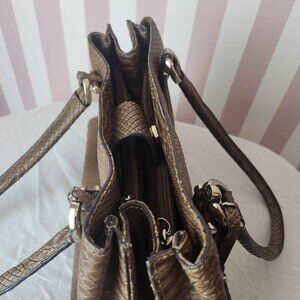Brown textured with 3 compartments + 2 zip compartments & 3 small pockets magnet close