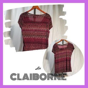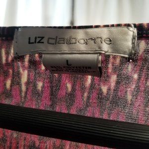 This is a used Liz Claiborne Top made of 95% Polyester and 5% spandex. Size Large