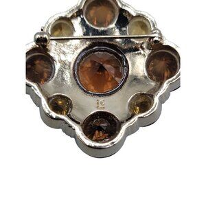 Liz Claiborne Topaz & Amber Crystal Brooch Gold Tone Setting Signed LC