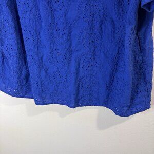 Liz Claiborne T-shirt Blouse XXL / 2XL Eyelet Lace Cotton Royal Blue Boho Lagen