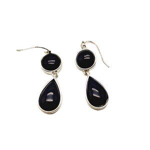 ♦ Deep navy (almost black) cabochon resin stones in silver-tone bezels