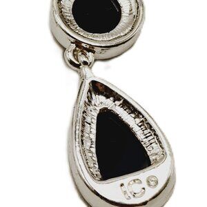 Liz Claiborne Two-tier Drop-Dangle Earrings Deep Navy Silver-tone Bezel