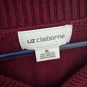 Discover comfort and classic style with this Liz Claiborne knit sweater. Rendered in a deep maroon, this top features a flattering V-neckline accented with a chic tie detail. The soft knit fabric and added stretch ensure a comfortable, easy fit, making it a perfect choice for all-day wear. Its versatile design pairs effortlessly with dress pants for a polished office look or with casual denim for a relaxed weekend vibe. A timeless and cozy essential for any wardrobe.