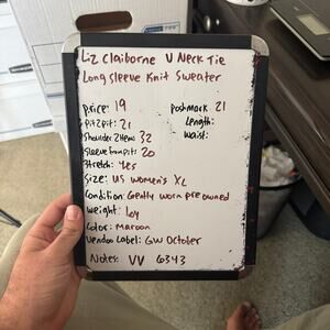 Liz Claiborne V Neck Tie Long Sleeve Knit Sweater US Women's XL