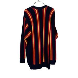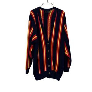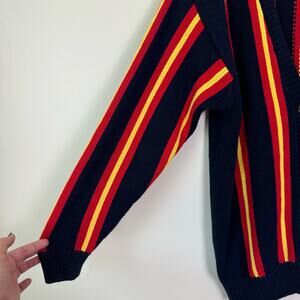 Liz Claiborne VINTAGE Bold Yellow Red Navy Blue Stripe Oversized Chunky cardigan