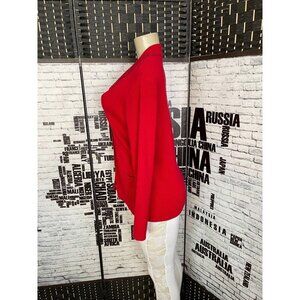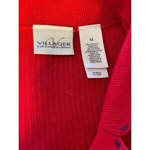 Liz Claiborne Villager M Red Ribbed Button Down Collar Long Sleeve Cardigan