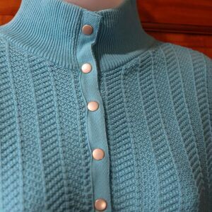 Style: Liz Claiborne, Turtleneck, Henley, Snap Button, Cotton Knit, Pullover, Teal Blue, XL, Layering