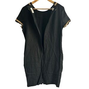 Liz Claiborne Vintage Women’s Size 10 Petite 100% Linen Safari Dress Braided Rafia Trim Black