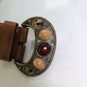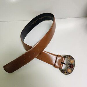 Liz Claiborne Vintage 1989 Brown Leather Cabachon Stone Buckle Belt Size L