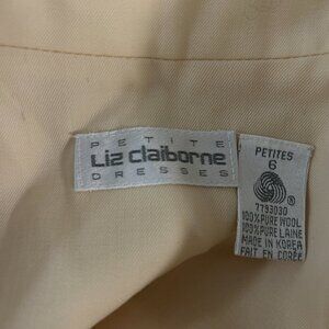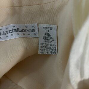 Liz Claiborne Vintage 80s 90s Ivory 100% Wool Military Gold Crest Dress Size 6 P