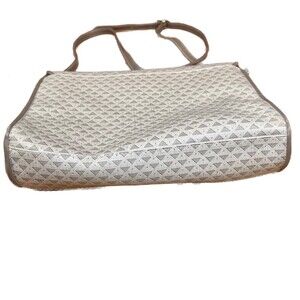 Flaws: scratches on front metal accent, faint stain on the front, scuffs on the leather piping