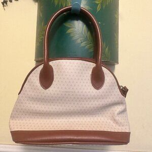 Liz Claiborne Vintage 90s Handbag Cream Brown Leather logo print rare