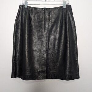 Liz Claiborne Vintage Black Soft Embossed Leather Mini Pencil Skirt Back Zip