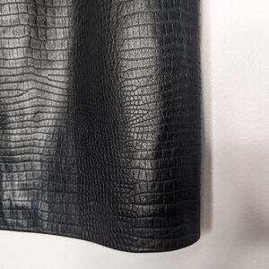 Style: soft leather, crocodile embossed, vintage, zip close, mini, lined, pencil skirt