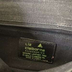 Vintage crossbody purse by Liz Claiborne. This purse has a blue pebbled faux leather with tan genuine leather trim. The blue faux leather has the Claiborne logo all over. The strap is adjustable.