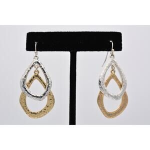 Liz Claiborne Vintage Dangle Earrings Silver Gold Tone Pebbled Shiny 1990s BinU