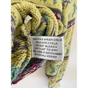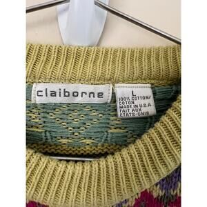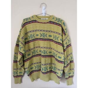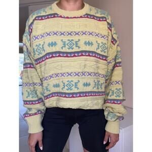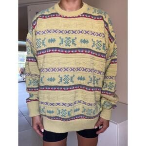Liz Claiborne Vintage Knit Oversized Sweater Yellow Striped Printed. Size L. 100% Cotton.