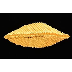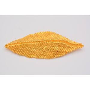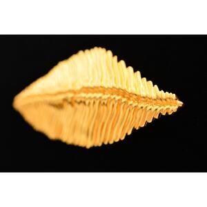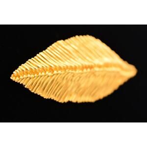 Liz Claiborne Vintage Leaf Pin Brooch Brushed Gold Chunky Heavy Signed NOS Bin4