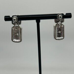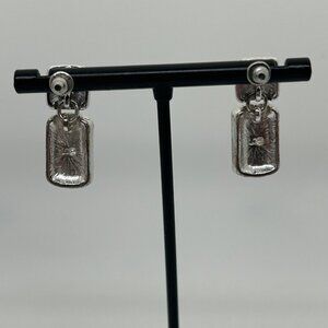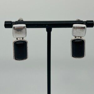 Liz Claiborne Vintage Silver-Tone Drop Earrings With Black Acrylic Rectangle Acc