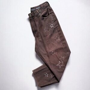 Liz Claiborne Vintage Star Print Distressed Jeans 16S Black Bleached Denim Punk