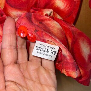 Liz Claiborne Vintage Womens Shirt Size 14 Red Apple Print Pure Silk