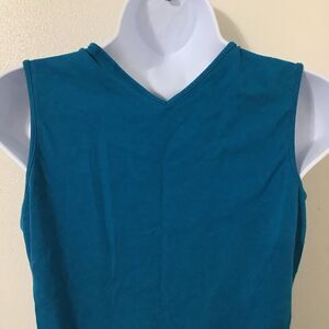 VTG 2000s Bohemian Hippie Festival Summer Summertime Beach Vacation Aesthetic Feminine Whimsical Blue Green Teal Sleeveless Top with Dainty Dangle Bead Detail