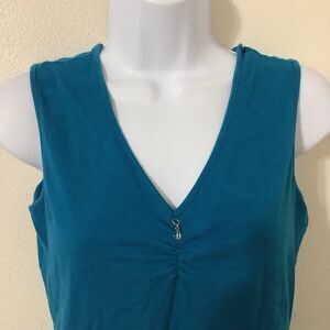 Liz Claiborne Vintage Y2K Teal Beachy Bead Detail Mermaid V Neck Top Medium