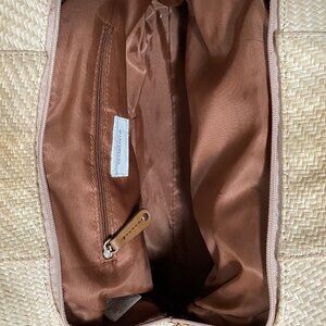 Liz Claiborne Vintge Woven Cream and Tan Leather Tote Bag