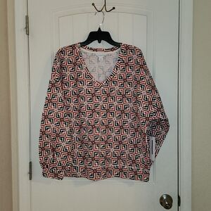 Liz Claiborne V-neck Black Logo Fleece Lined Sweatershirt, Size XL